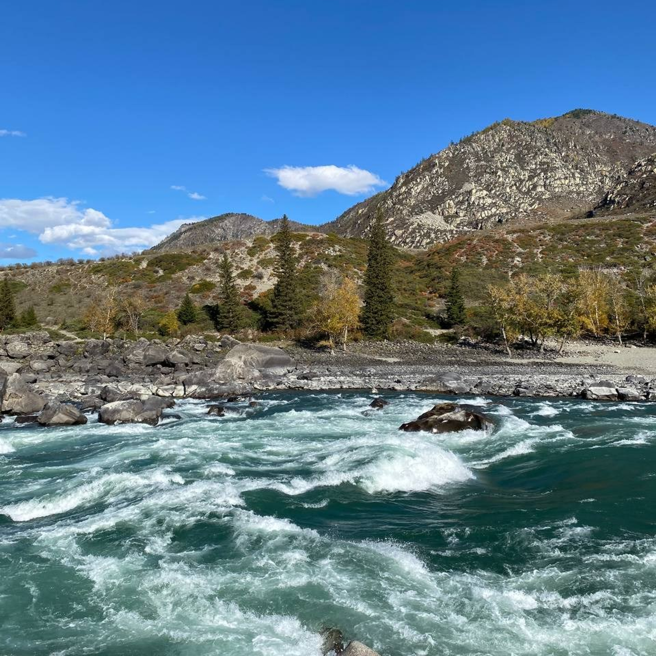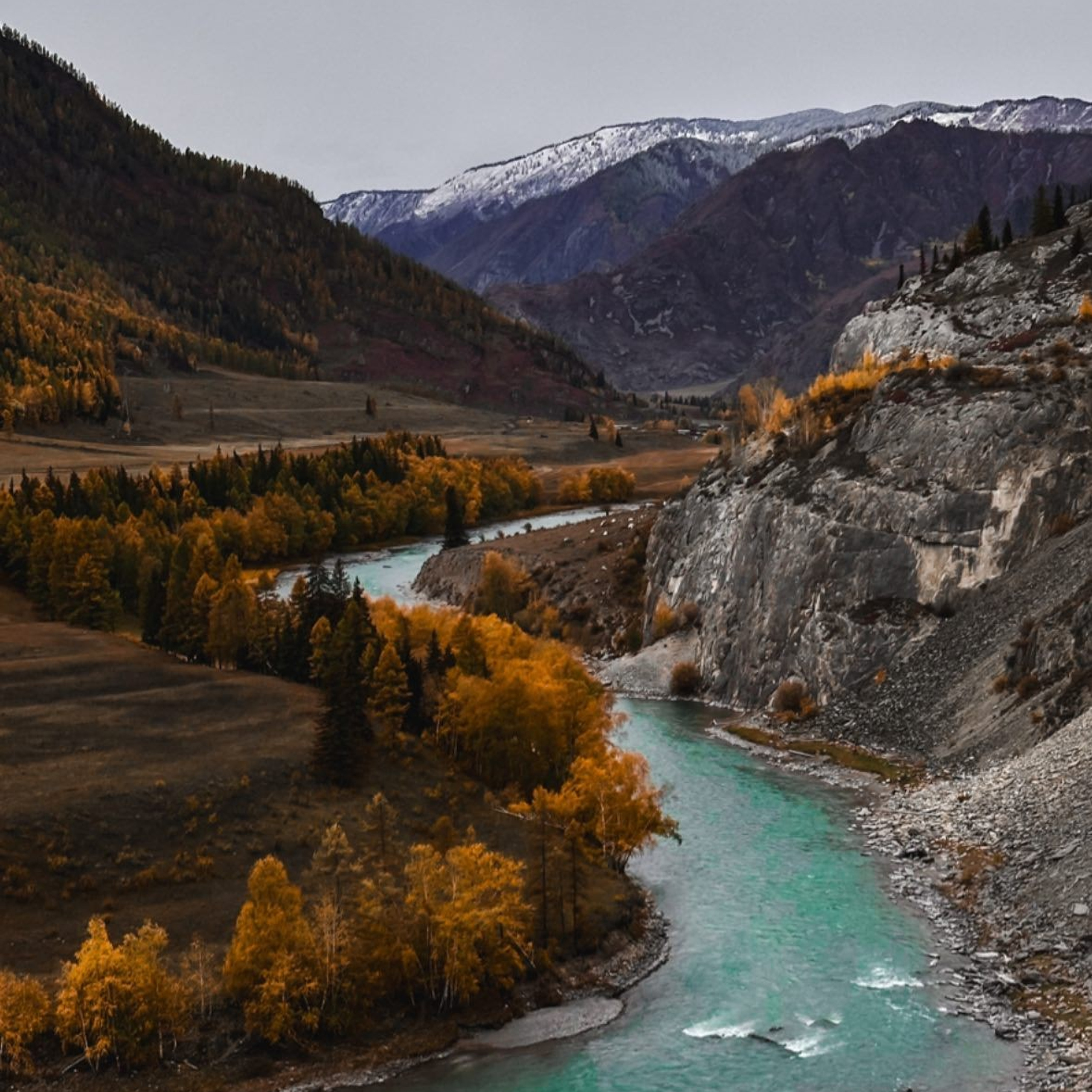 Это прекрасное время, когда становится мало людей на локациях, ведь все съездили летом, днем еще тепло, а природа окрашивается в невероятные краски осени, заснеженные вершины, ярко бирюзовая Катунь, улучшенное жилье и стоимость ниже, чем в летний сезон