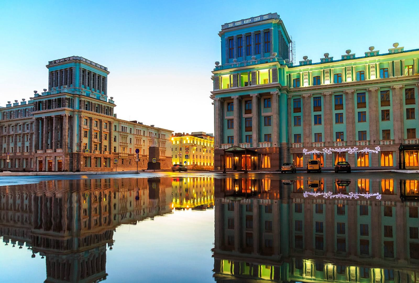 13:00 — Возвращение в парк-отель, обед. После обеда трансфер на корабле в город Норильск