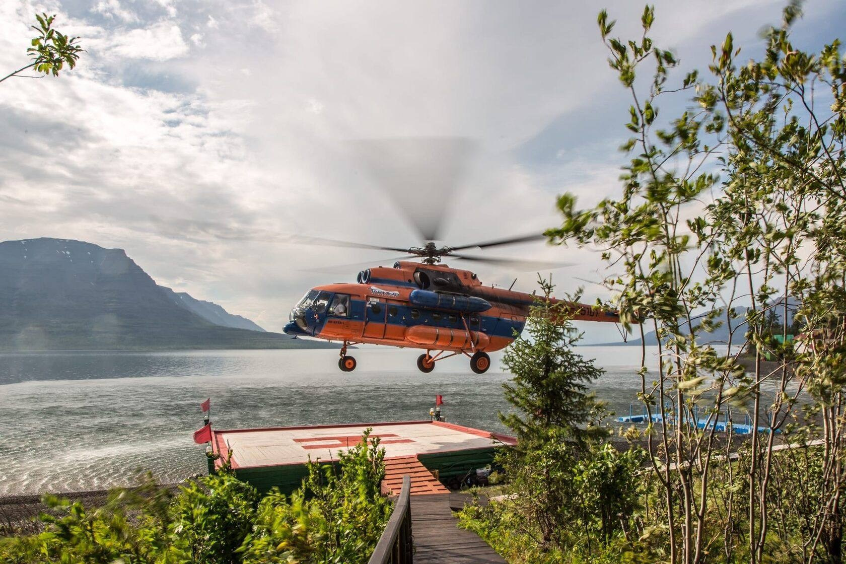 9:00 — Трансфер на вертолётную площадку, регистрация на рейс и вылет на плато Путорана