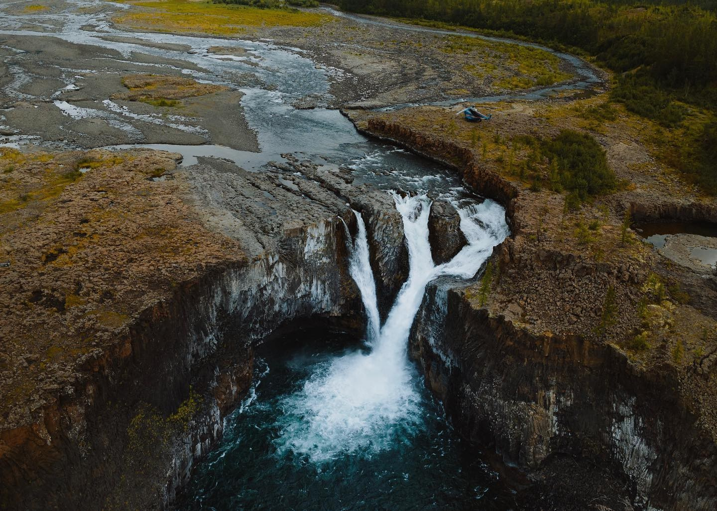 11:30 — Посадка у Иркиндинского водопада (высота 27 м), одного из самых впечатляющих водопадов плато Путорана. Благодаря большому объёму воды в реке Иркинде водопад никогда не истощается до маленькой струйки и всегда производит сильное впечатление. Иркиндинский водопад находится на границе заповедника «Путоранский» и в непосредственной близости от горы Чая-Кит — места обитания путоранского снежного барана и орлана белохвоста, эндемиков заповедника. Так что, если повезёт, можно будет увидеть этих редких представителей своими глазами (бинокль или подзорная труба будут очень кстати).
